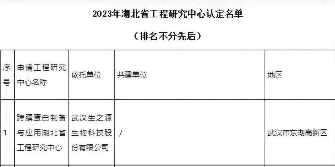 喜訊!生之源股份獲批湖北省工程研究中心